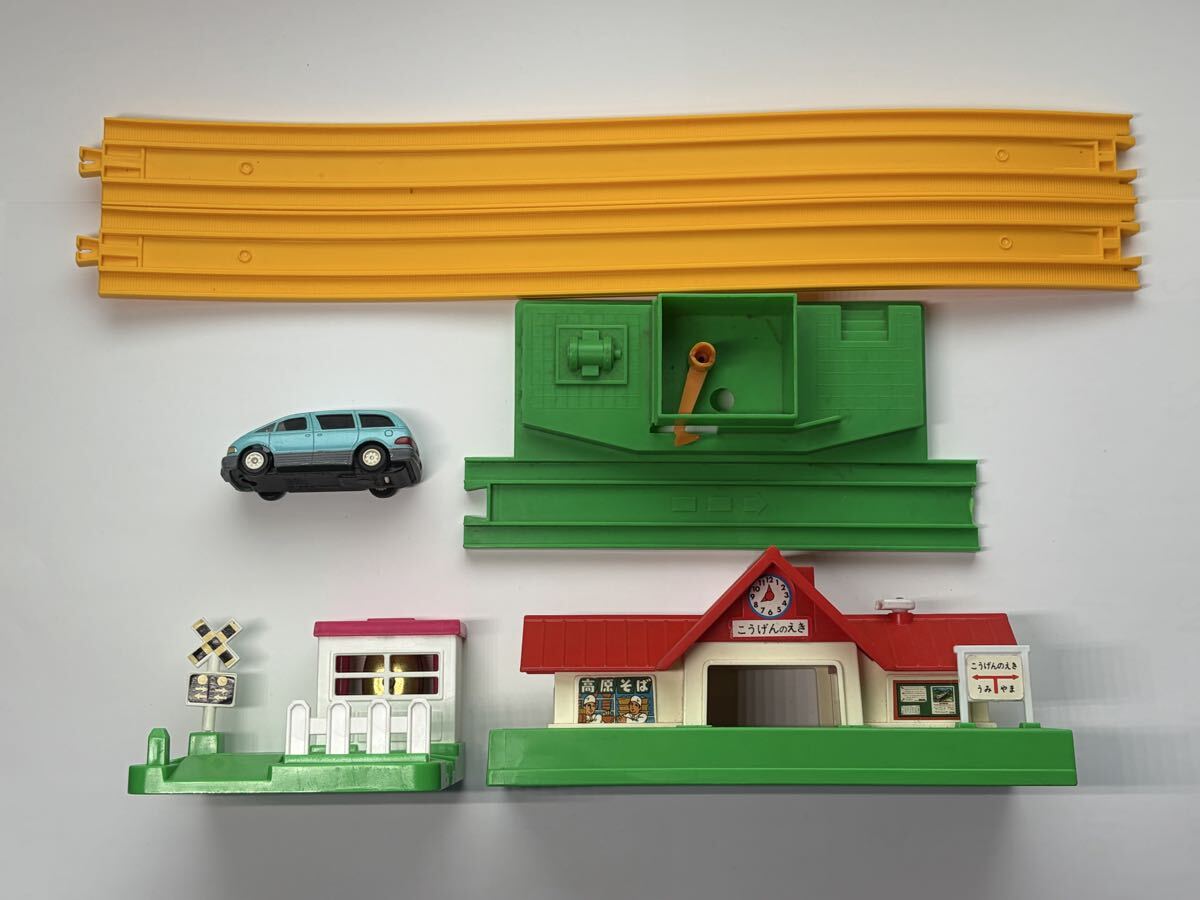 - ◆プラレール◆ 情景部品 こうげんのえき 音入り踏切 黄色坂レール B/Oトミカ エスティマ 日本製 レア まとめ