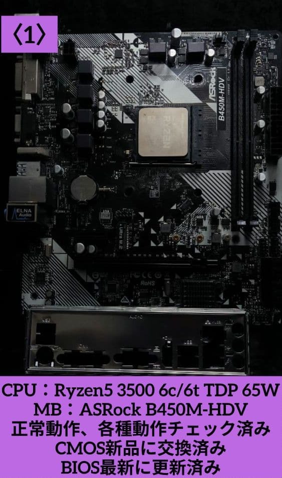 - 【1】セット売り!! Ryzen5 3500 + ASRock B450M-HDV 正常動作確認済!!