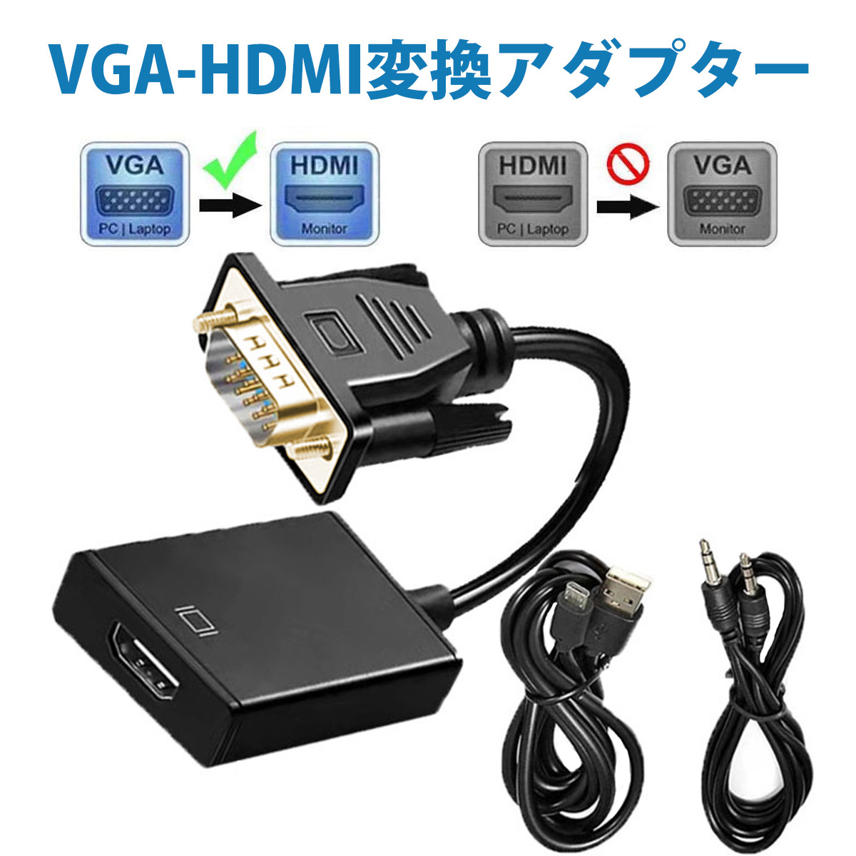 - vga hdmi 変換 vga to hdmi VGA to HDMI変換ケーブル VGA HDMI 変換アダプタ音声対応 電源供給 VGAオス HDMIメス 映像変換ケーブル ;J8682;