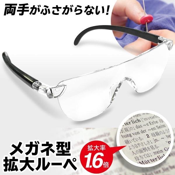 > ルーペ 拡大鏡 メガネ 1.6倍 ルーペメガネ おしゃれ ポーチ付き 老眼鏡 拡大 眼鏡型 読書 勉強 送料無料 100T◇ メガネ型ルーペ1.6倍IB