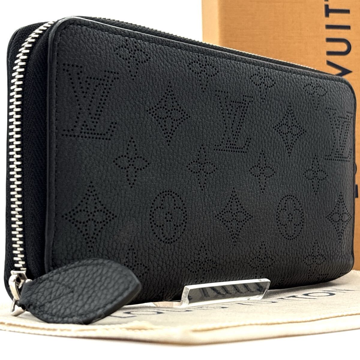 > 現行型◆極美品◆LOUIS VUITTON ルイヴィトン ジッピーウォレット マヒナ LVロゴ ラウンドファスナー 長財布 ノワール ブラック メンズ