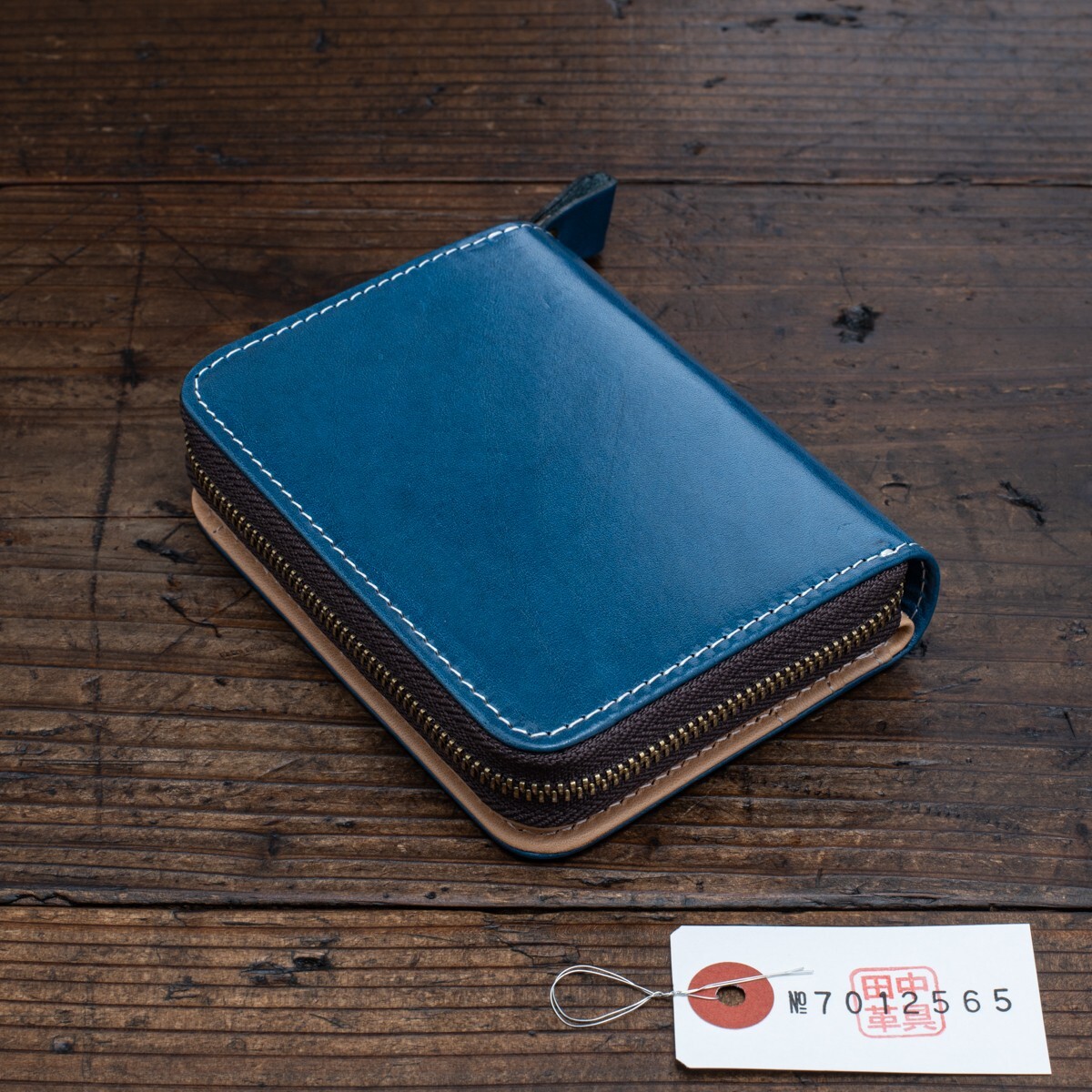 - インディゴブルー【本革】青藍色 イタリアンレザー ラウンドファスナー コンパクト メンズ 財布 二つ折り 新品 送料無料 1円 田中革具