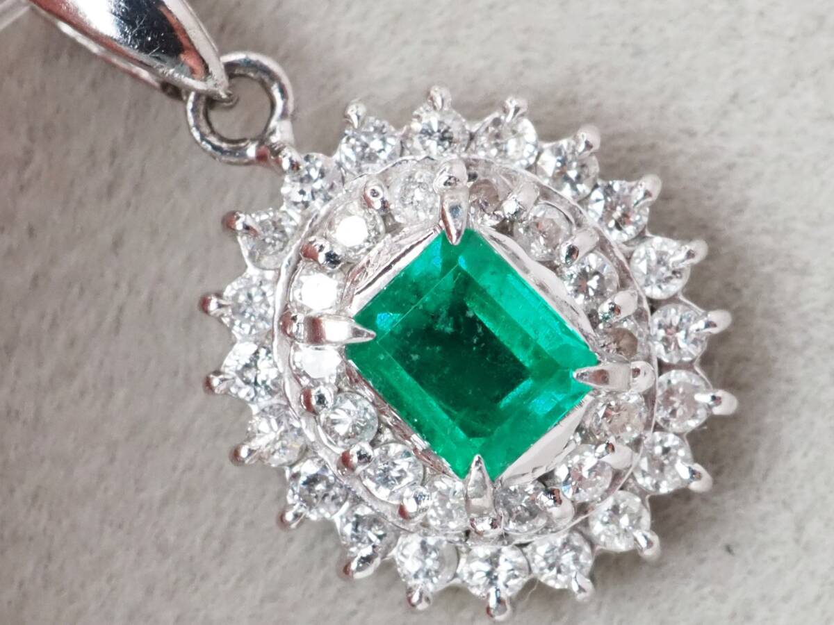 > 【9591E】Pt900 天然エメラルド 天然ダイヤモンド 0.31ct/0.30ct/2.5g ペンダントトップ