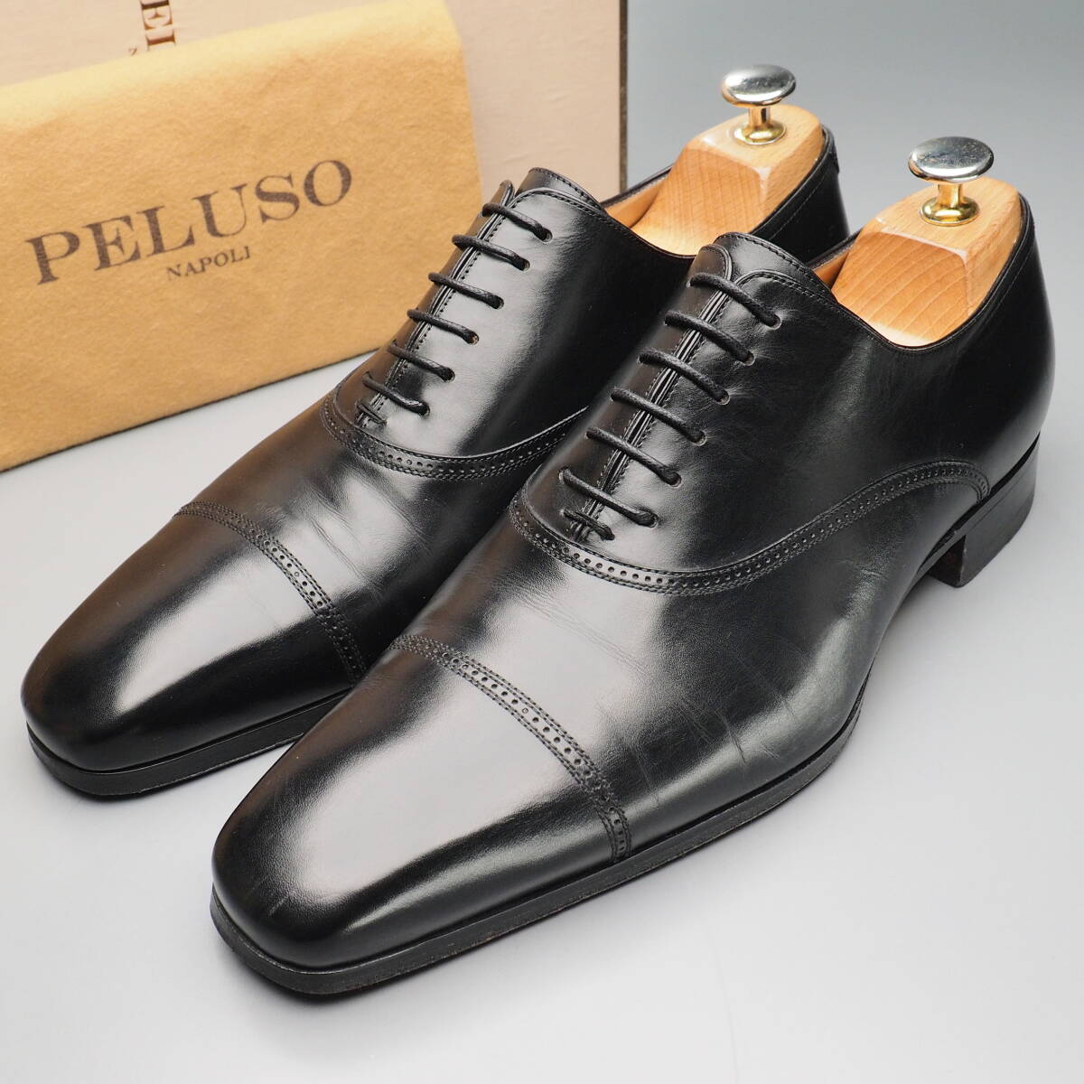 - GT1333//イタリア製*ペルーゾ/PELUSO*メンズ5/パンチドキャップトゥ/ストレートチップ/レザーシューズ/革靴/黒/ブラック