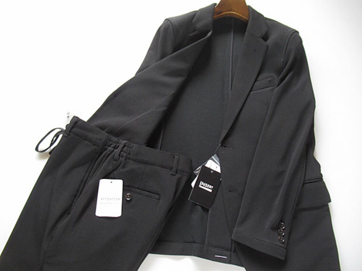 > 新品◆春夏秋冬★INSERT セットアップ バーズアイ ストレッチ ジャージー スーツ ブラック M オールシーズン ジャケット&パンツ