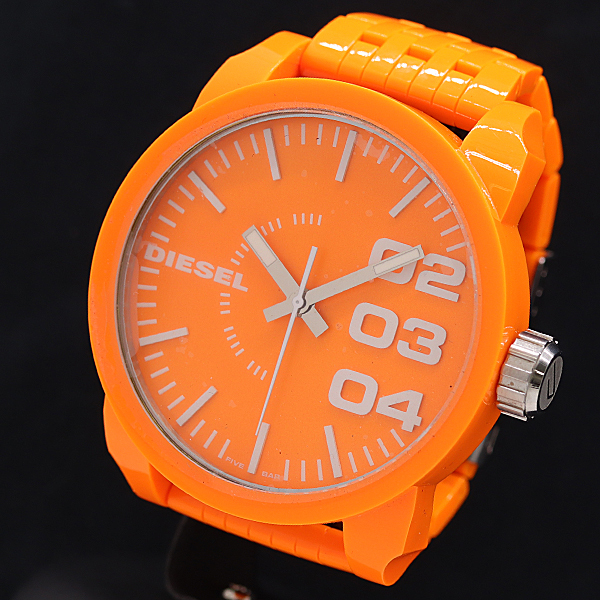 > 1円 良品 箱付 ディーゼル DZ-1581 111301 SS QZ オレンジ文字盤 メンズ腕時計 7615100 3JWY KMT