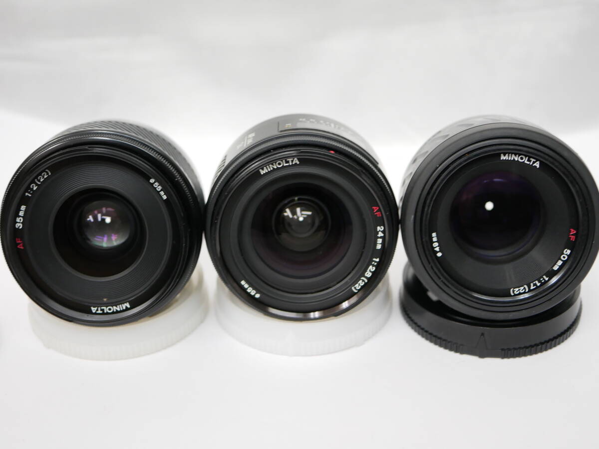 > #2257 MINOLTA AFレンズ3本 35mm F2 24mm F2.8 50mm F1.7 ミノルタ