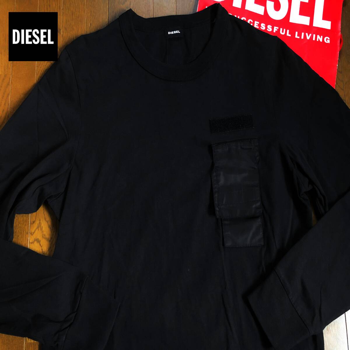 - ●サイズL DIESEL ディーゼル 高級 ミリタリー ラバーポケット コットン ブラック カットソー シャツ 黒 即決 即納 55dsl y2k●2013