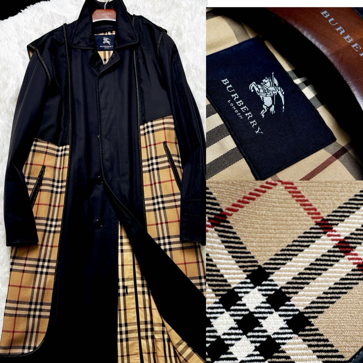 > 大きい180 M.L.XL. BURBERRY LONDON 幻の最高級ギャバジン ★極稀少ウールライナー 艶感立体トレンチコート BBロゴ美色 24万