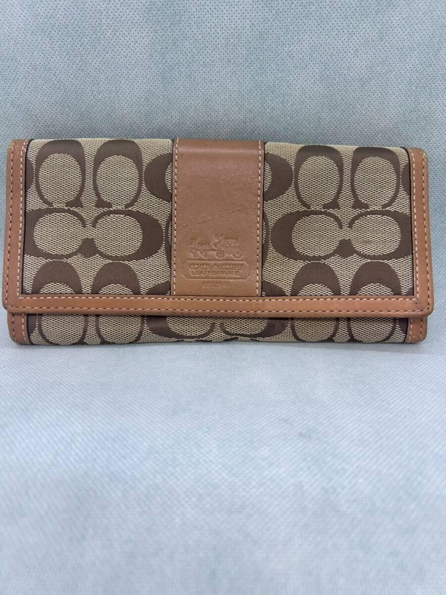> COACH コーチ 長財布 キャンバス × レザー シグネチャー ウォレット LEATHERWARE EST.1941 中古