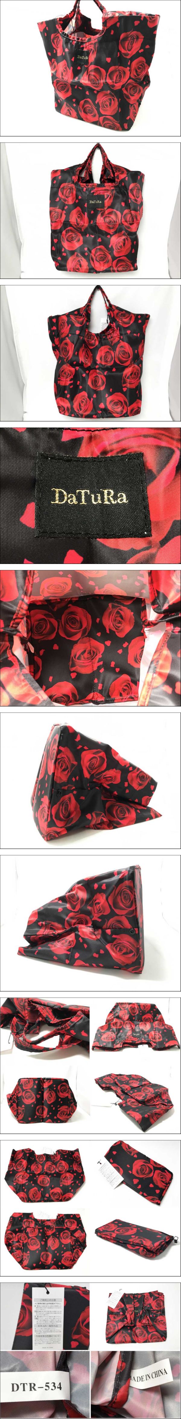 > ◆未使用 美品!ダチュラ DaTuRa 折り畳み エコバッグ DTR-534 ローズ柄 バラ柄 ブラック ナイロン コンパクト マチ広 レディース タグ付き