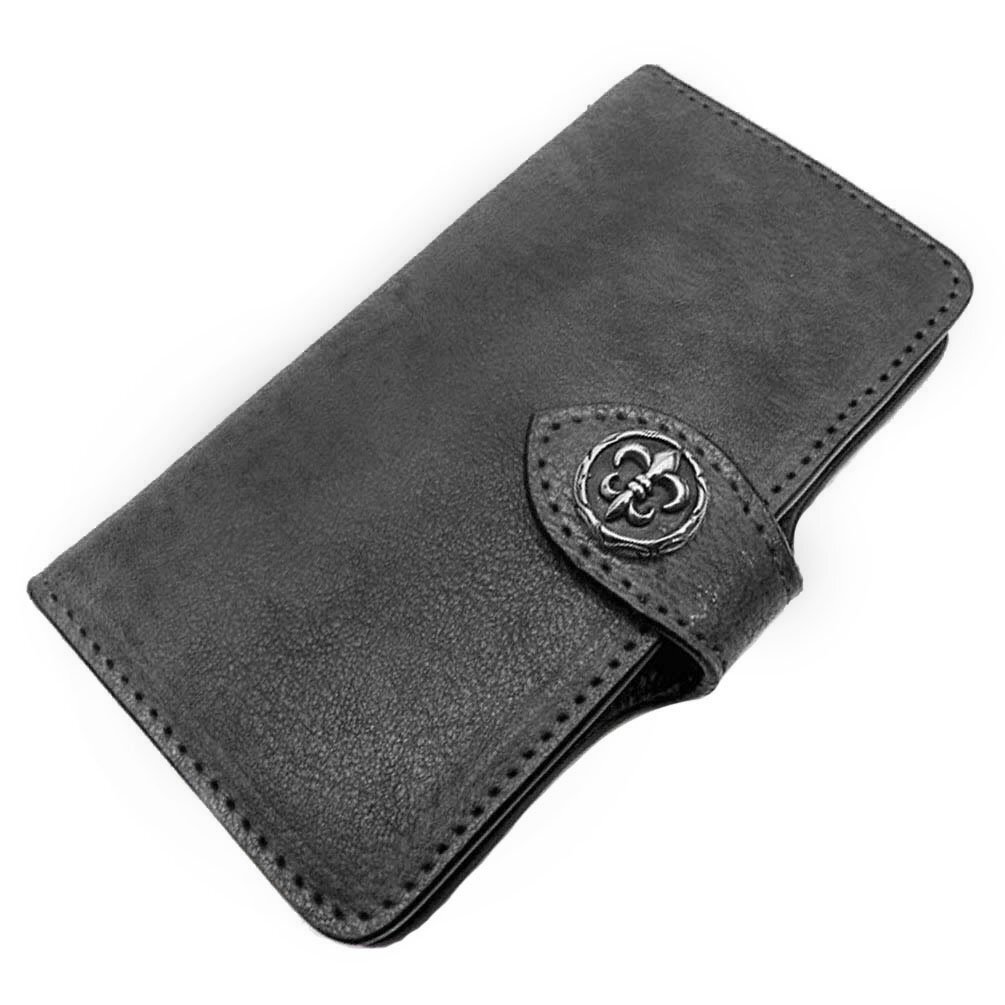 - iPhone 17 iPhoneケース スマホケース 手帳型 レザーケース アイフォンケース 馬革 ホースレザー ブラック コンチョ付き