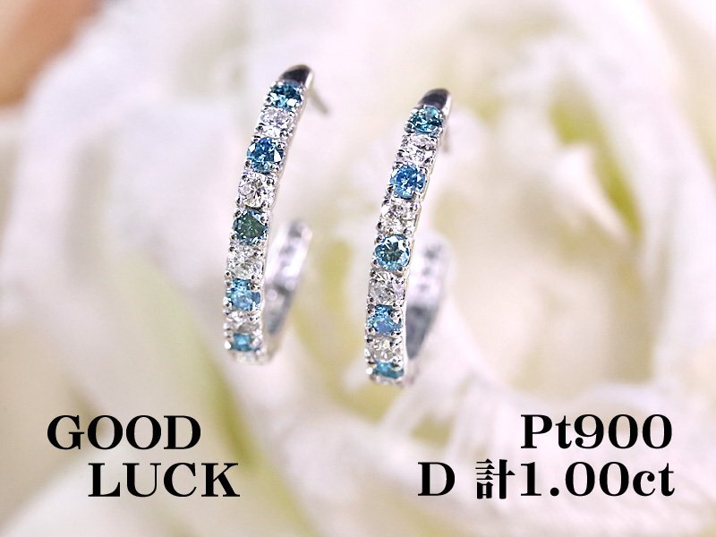 - 【新品・未使用】1円~最落無 天然ダイヤモンド 計1.00ct,ミニ鑑別付,プラチナ トリートブルーダイヤ入り フープスタイル ダイヤ ピアス
