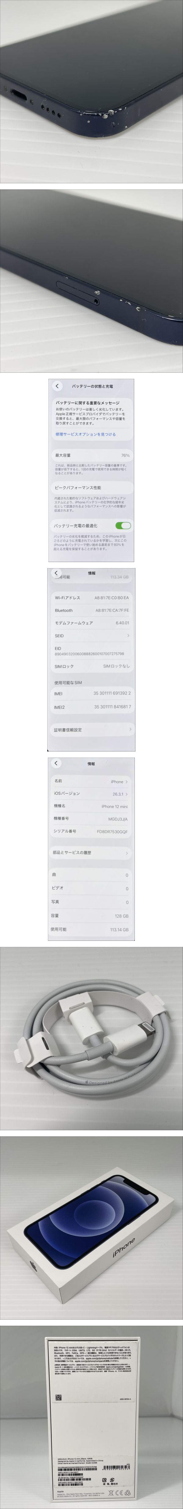 - 2603M4209 Apple アップル iPhone 12 mini MGDJ3J/A 128GB IMEI docomo:〇判定 SIMフリー 通電確認済 箱付