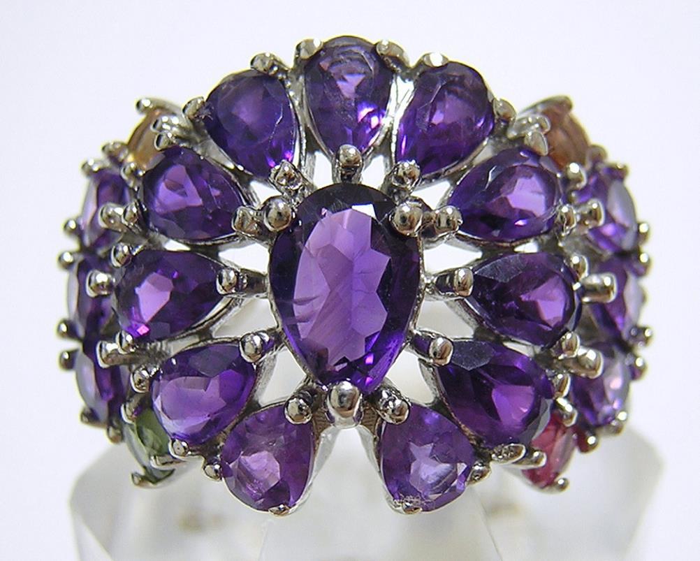 - 『天然アメジスト』 デザインリング 指輪 サファイア タンザナイト 15号
