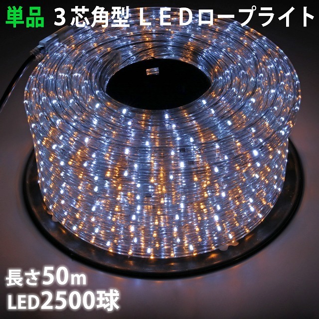 - 単品 ・ 電源コントローラー別売 ・ ロープライト本体のみ LED イルミネーション 3芯 角型 50m 白 ・ シャンパン