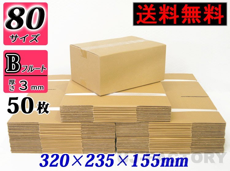 - 【地域限定送料無料!即納!】ダンボール箱/80サイズ【50枚】★320mm×235mm×155mm