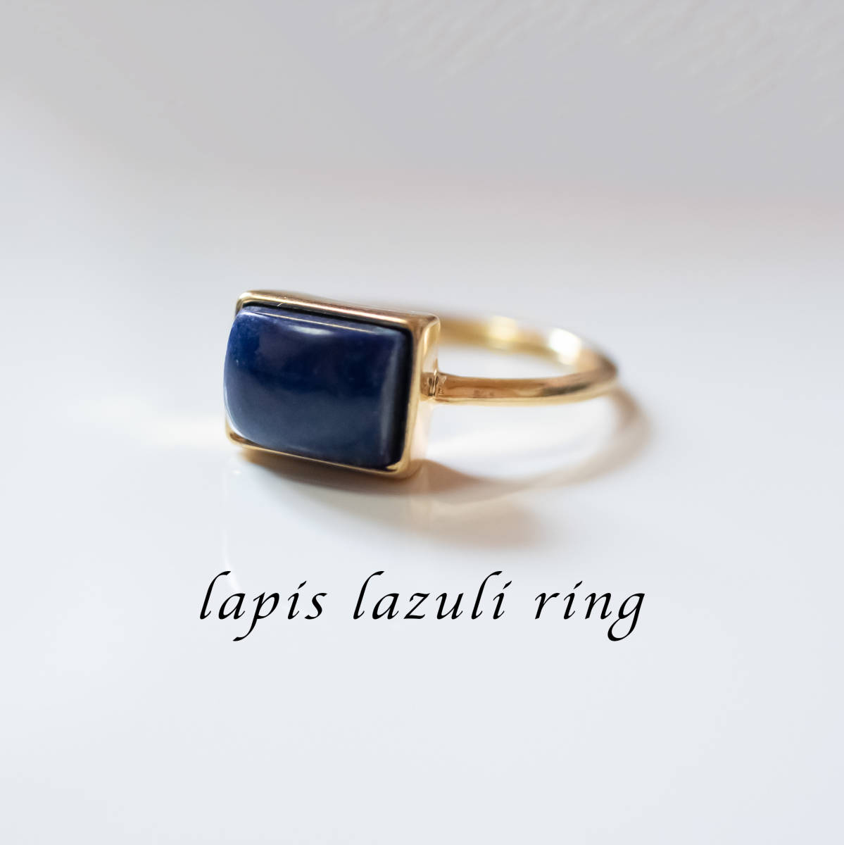 - 新品 天然石 ラピスラズリ リング【10号】指輪 ゴールド レクタングル