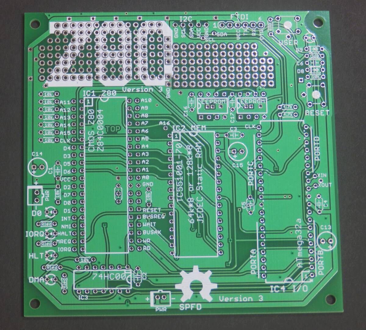 - Z80-MBC 製作用 プリント基板 緑色 Z80 マイコンボード Z84C0004 TC551001 ATMEGA32A-PU exc4x