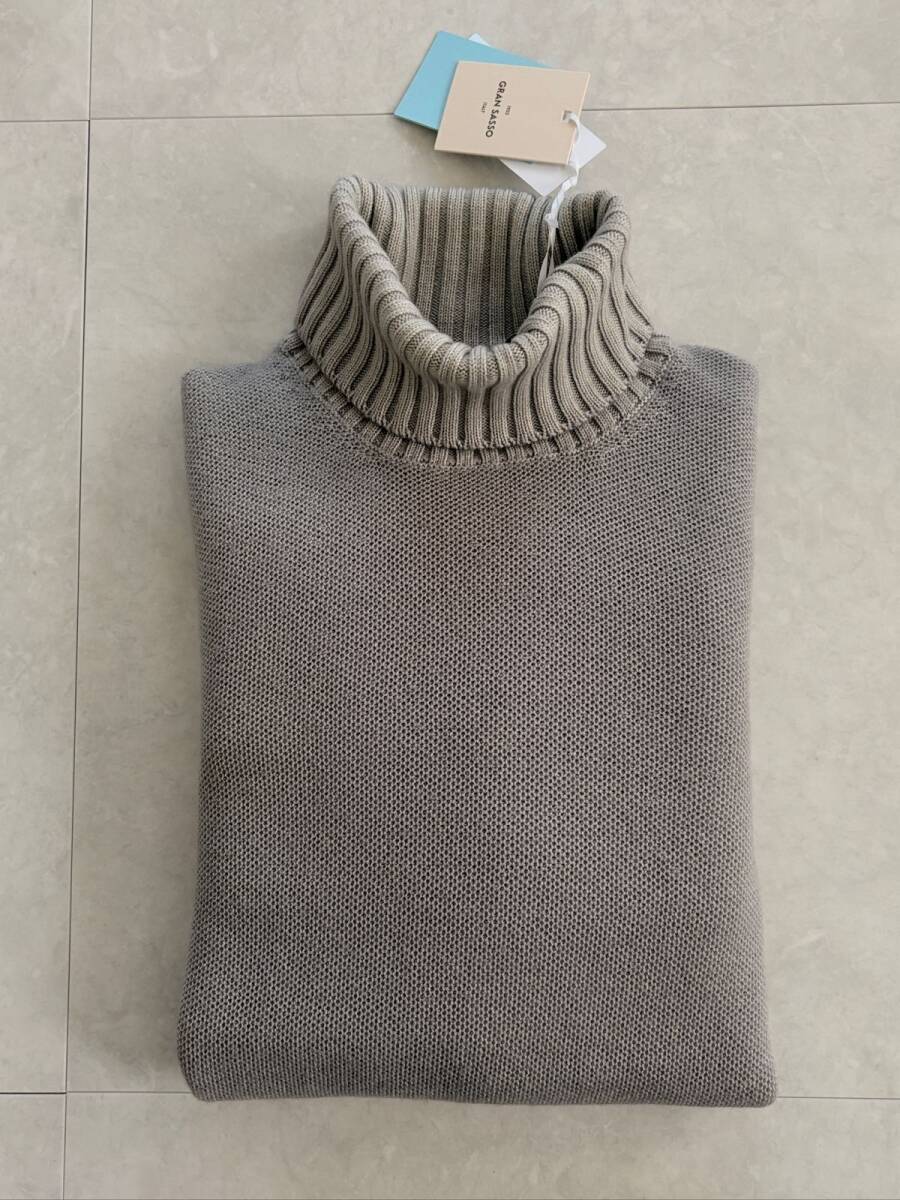 - 6922】新品6.6万【GRAN SASSO / グランサッソ 52 秋冬 Vintageライン ウォッシュ加工 ミドルゲージタートルネックニット】グレー