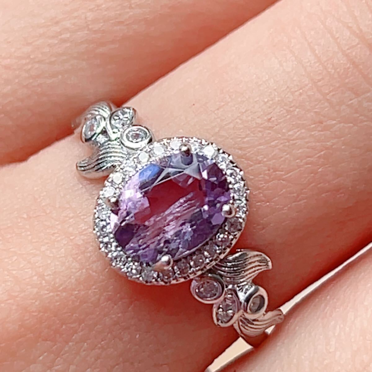 - ◇紫水晶◇アメジスト◇ 面カット キラキラ◇指輪◇リング◇天然石◇パワーストーン◇巾着袋付き◇プレゼントにも043R122113