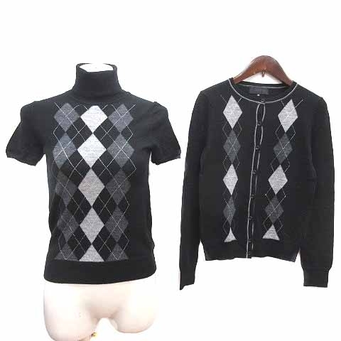 > アンタイトル UNTITLED アンサンブル カーディガン ニット カットソー タートルネック アーガイル柄 ウール 2 M 黒 レディース