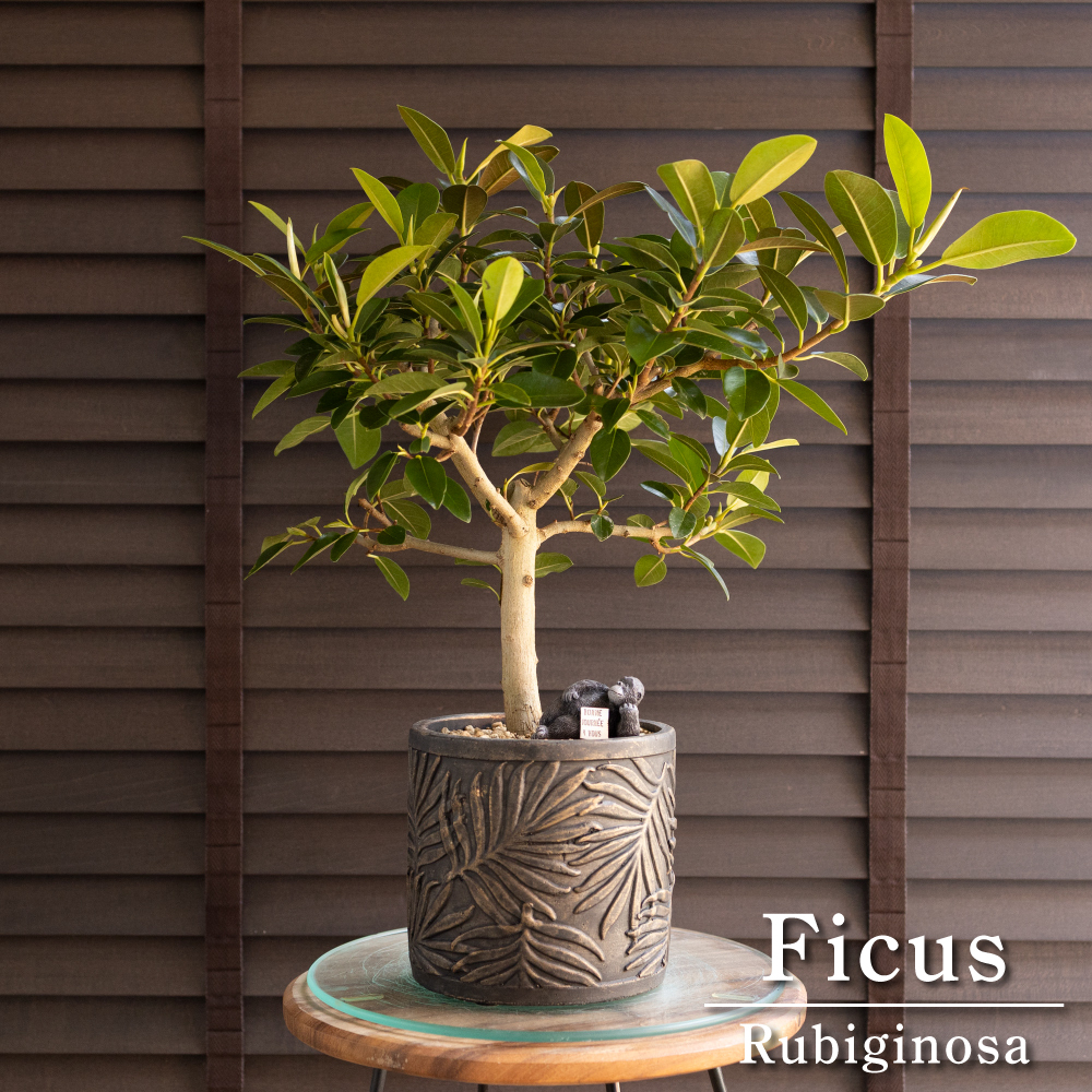 - 花のう付き フィカス ルビギノーサ 盆栽仕立て フランスゴムの木 Rubiginosa 5号 陶器鉢 観葉植物 ゴムの木 0314BK