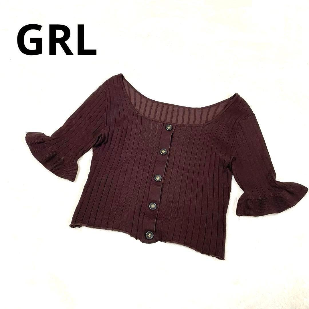 - グレイル GRL フリル 半袖ニット スクエアネック ブラウン ショート丈 C315C6