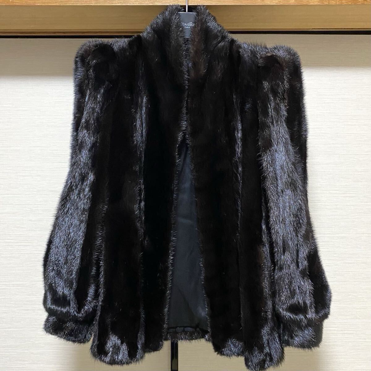 - ダークミンク MINK リアルファー 本毛皮 ロングコート 毛皮 アウター ブラック 黒系 Lサイズ 11号 レディース