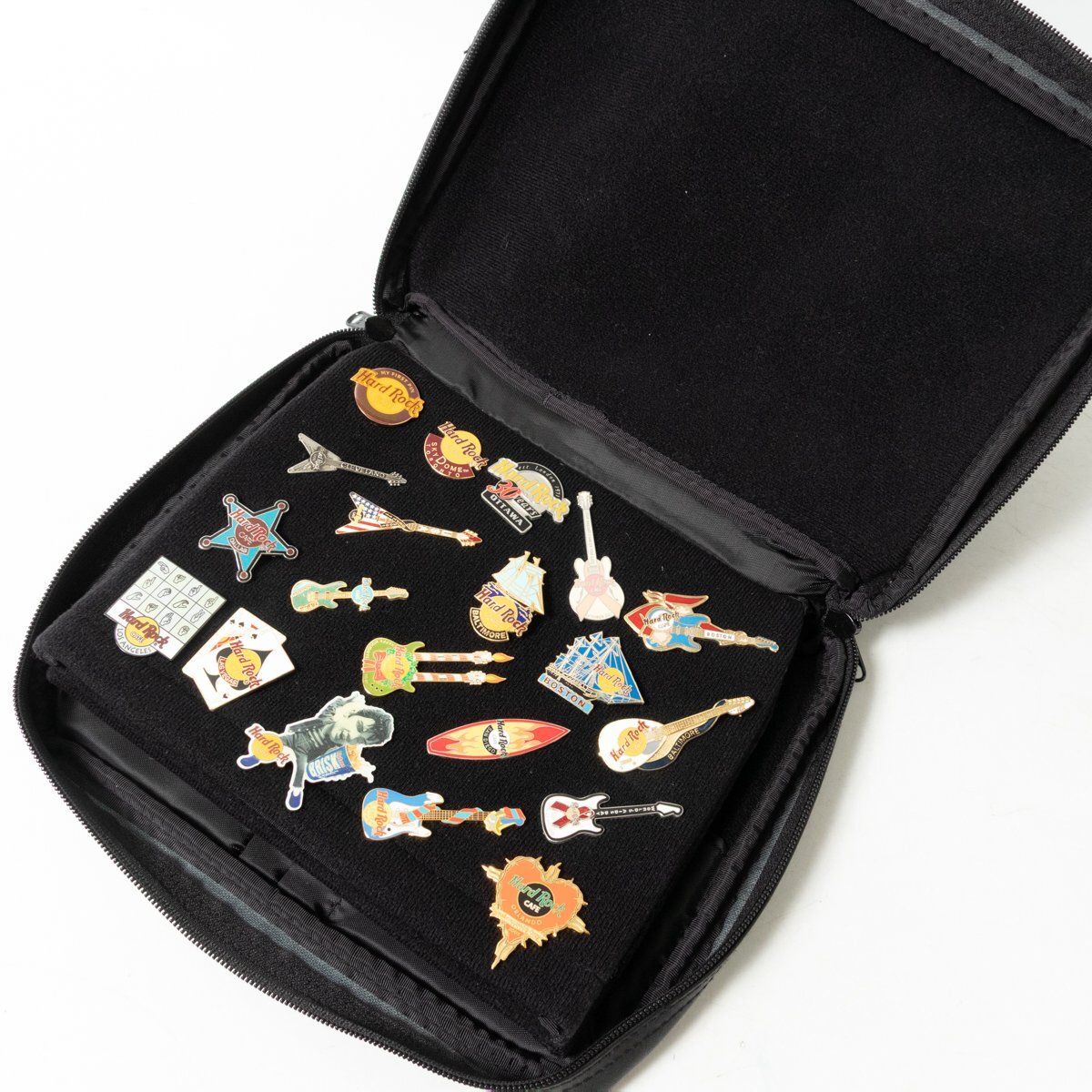 - 【1円スタート】Hard Rock Cafe ハードロックカフェ ピンバッジ収納ショルダーバッグ 手持ち 斜め掛け 2way ブラック ピンバッジ付 bag 鞄