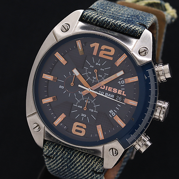 > 1円 稼働 箱付 ディーゼル オーバーフロー DZ-4374 861512 SS QZ クロノグラフ ブルー文字盤 メンズ腕時計 7615100 3JWY KMT