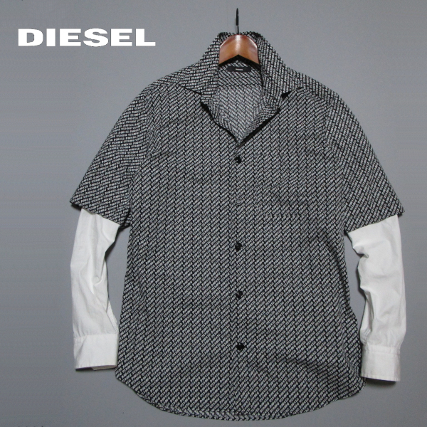 - 【ディーゼル】 レイヤードデザイン 長袖シャツ ロゴ総柄 ブラック/ホワイト 海外S(日本M-L相当) DIESEL ディーゼルジャパン
