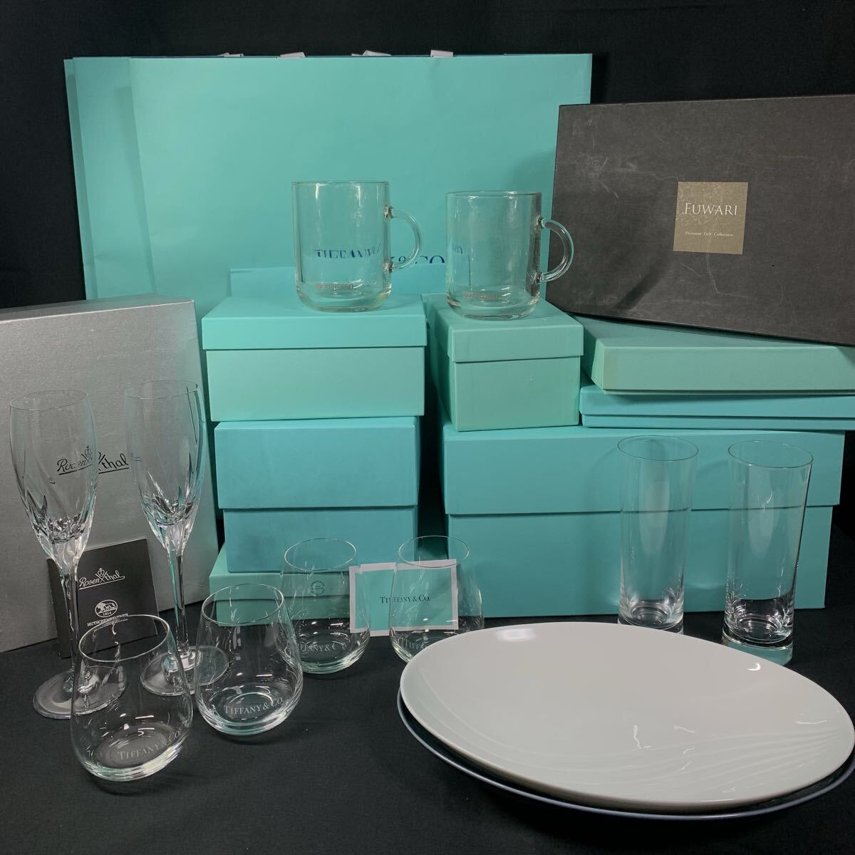 - F036 食器 まとめ セット Tiffany ティファニー ローゼンタール FUWARI ネスプレッソ グラス プレート ペア 中古品 空箱 ショッパー 1円
