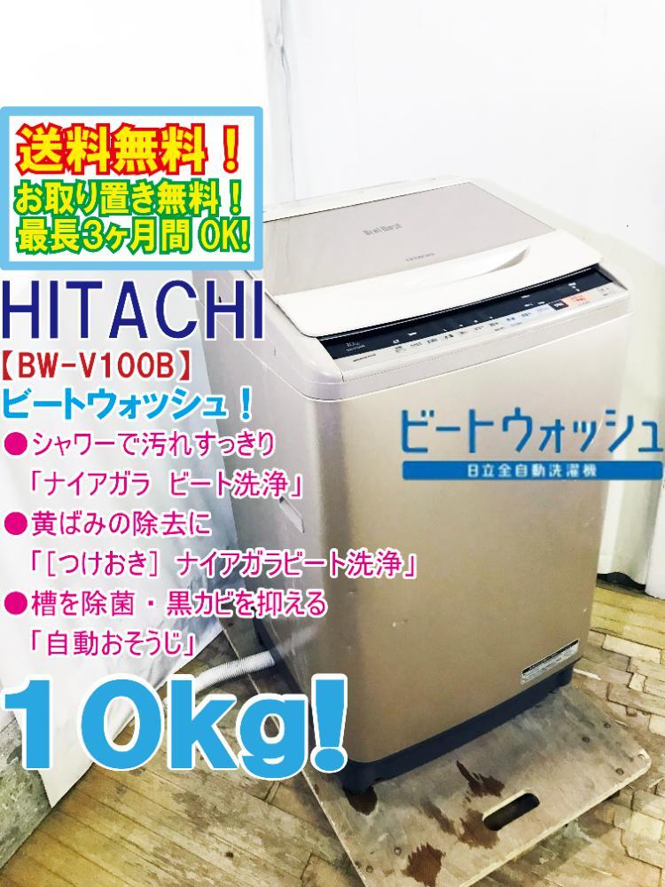 > 送料無料★超美品 中古★日立 10㎏ 黄ばみ除去に[つけおき]ナイアガラビート洗浄!!自動おそうじ 洗濯機【BW-V100B-N】GF5I