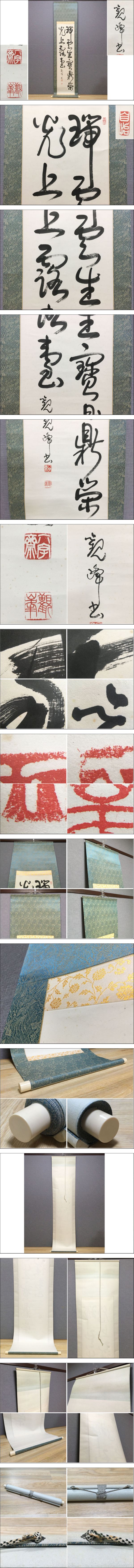 > ◆良品!掛軸 原田観峰書 二行書 肉筆 約204.5cm×約46.5cm 日本習字創立者 福岡出身 書画 紙本 掛け軸 茶掛 古美術 模写 K-3