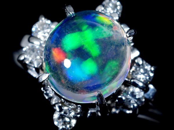 > 1円~【ジュエリー極】カラフル遊色!天然ウォーターオパール0.97ct&天然ダイヤモンド 高級Pt900リング a3542ko【送料無料】
