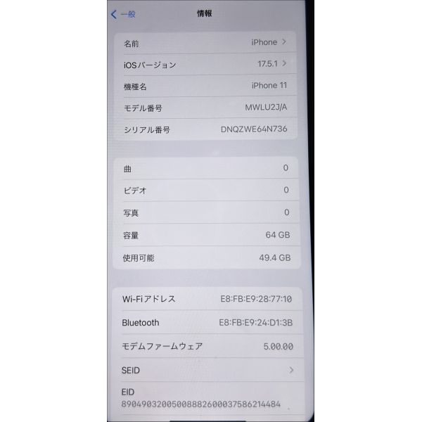 > 2603M4207 Apple アップル iPhone11MWLU2J/A 64GB IMEI KDDI:〇判定 SIMロック有 通電確認済 ホワイト