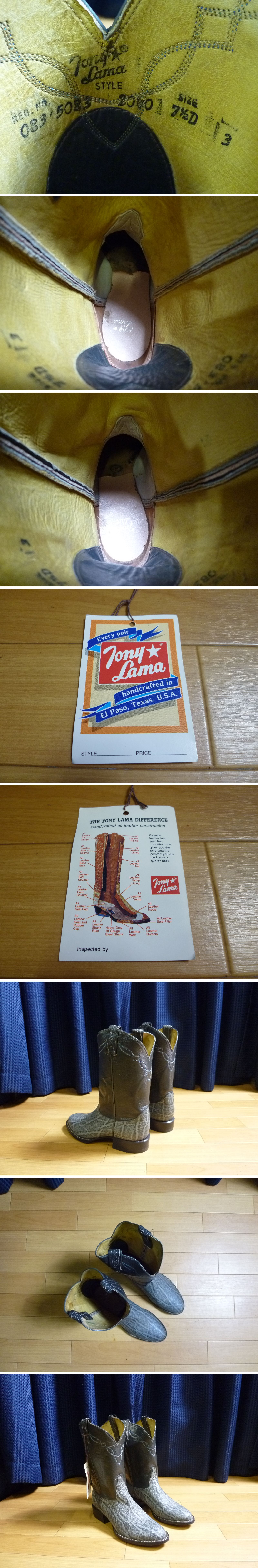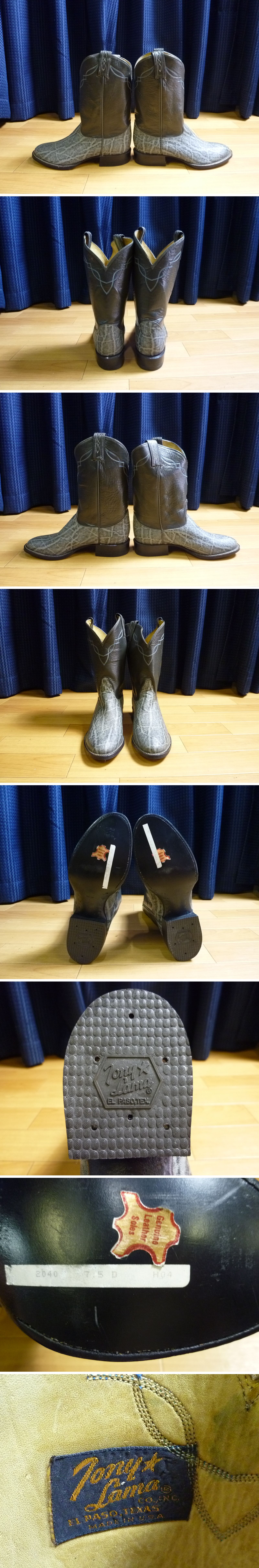 > ▲ デッドストック品 ? Tony Lama トニーラマ 2040 SIZE 7 1/2 D ブーツ ブラック 黒 グレー 灰色 ELEPHANT ? エレファント ? 象 ? 象革 ?