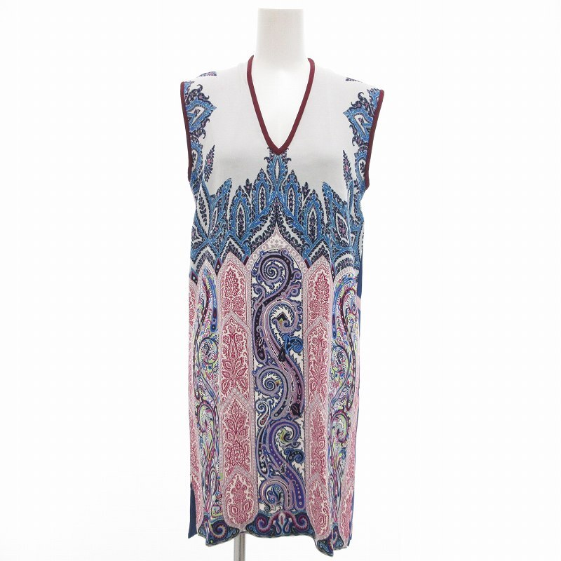 - エトロ ETRO ワンピース ノースリーブ ひざ丈 ペイズリー柄 38 青系 マルチカラー /UO ■GY41 レディース