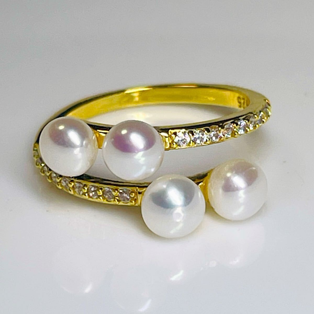 - 本真珠リング 指輪 絶品極上 無核 シルバー 5mm ベビーパール CZダイヤ 照り抜群 真珠リング アクセサリー