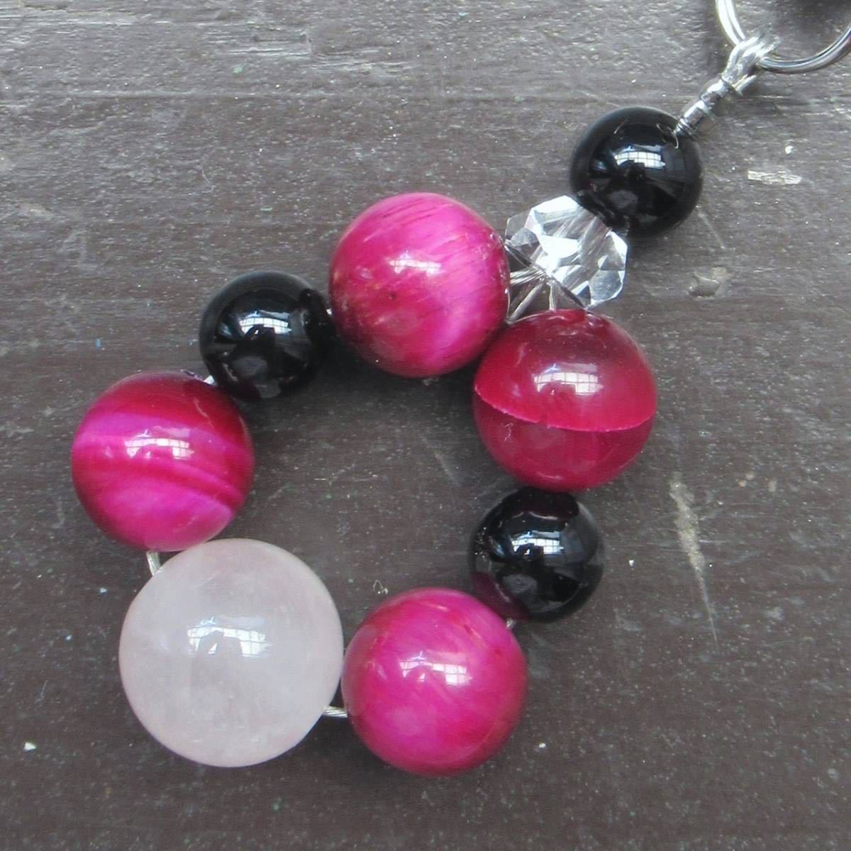 - ローズクォーツxピンクタイガーアイxオニキスストラップ 天然石 パワーストーン