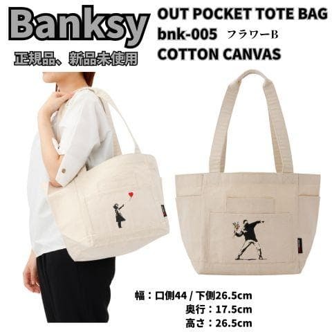 - 【送料無料,即決】【Banksy】OUT POCKET TOTE BAG bnk-005フラワーB