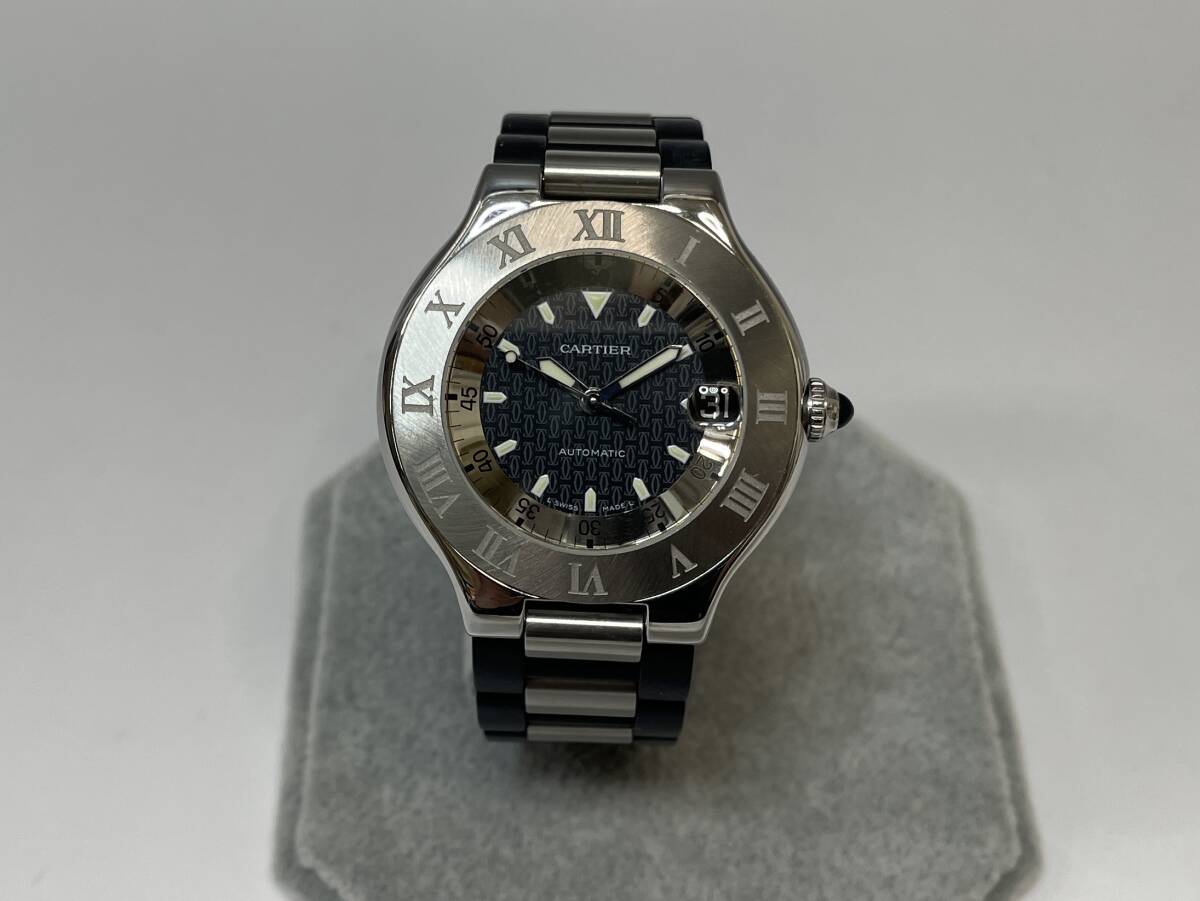 - 美品 カルティエ マスト21 オートスカフ ヴァンティアン デイト 自動巻き腕時計 ブラック文字盤 W10147U2 メンズ レディース