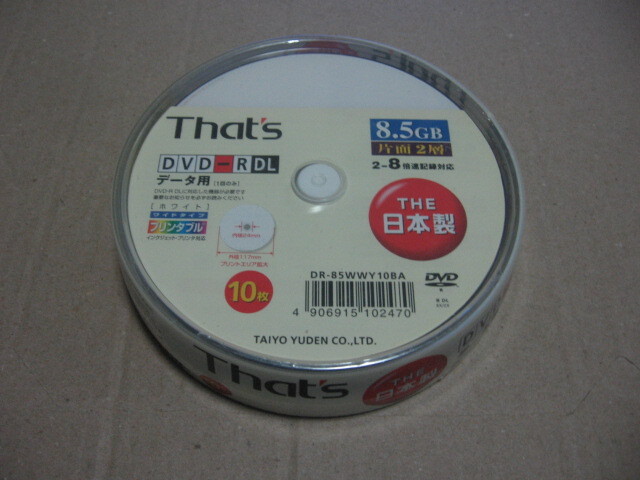 - 太陽誘電 That's DVD-R DL データ用/8.5GB(片面2層) 10枚 DR-85WWY10BA THE日本製