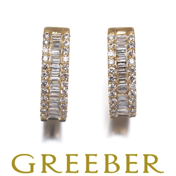 > ダイヤ ダイヤモンド 0.35ct/0.35ct フープ テーパーカット 2種カット ピアス K18YG GENJ