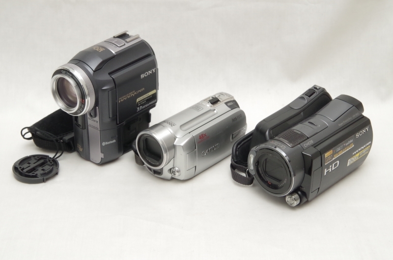 - ジャンク SONY Canon ビデオカメラ 3台まとめて SONY DCR-PC300 SONY HDR-SR12 Canon iVIS FS10