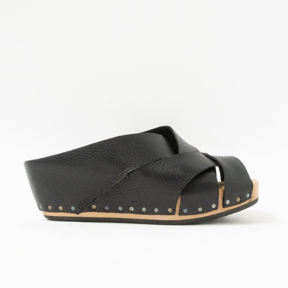 - 【1円スタート】 trippen トリッペン サイズ38 TWIST ツイスト ウッドサンダル レザー ブラック 厚底 木製 春夏 レディース 婦人