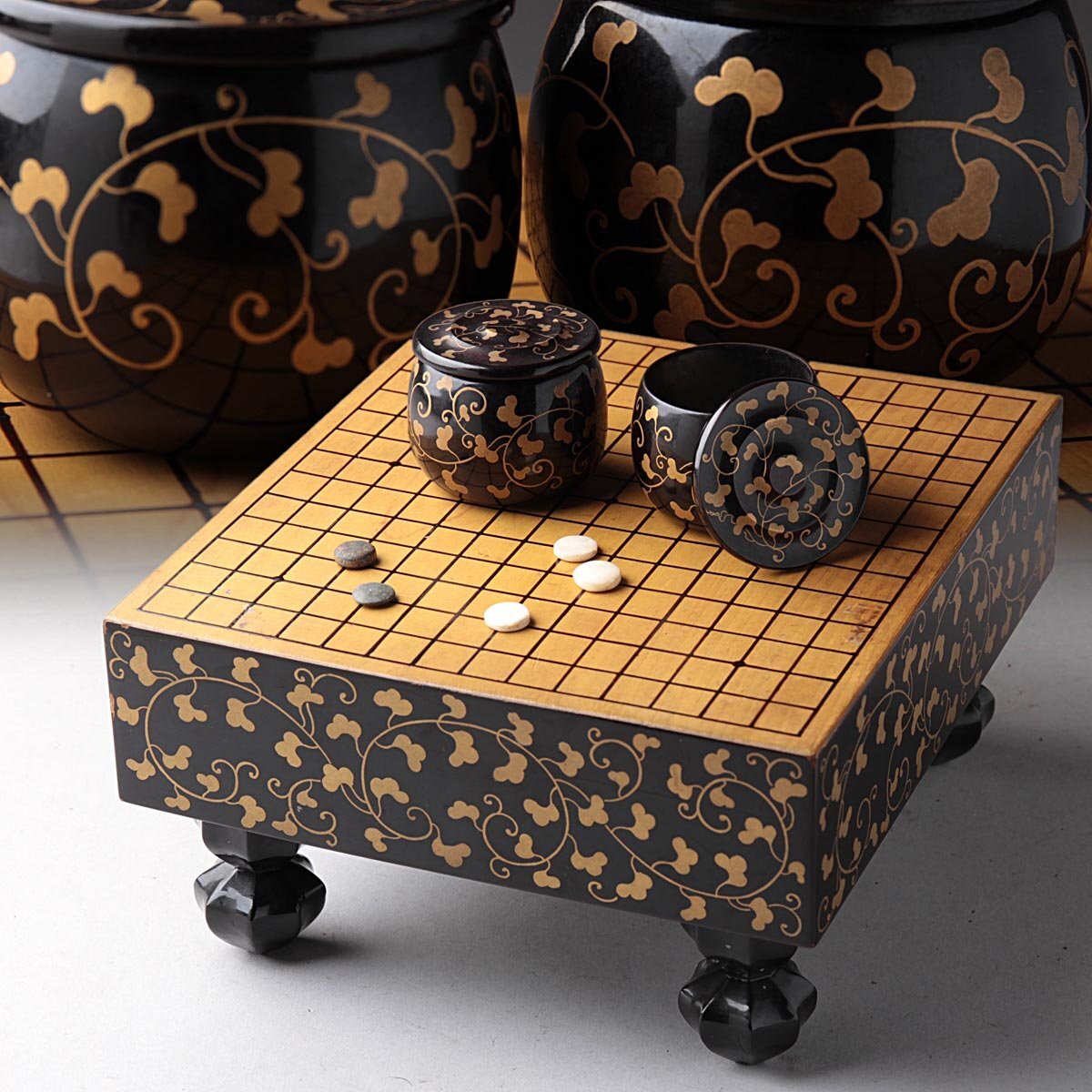 - ZN715 時代 ひな道具 / 雛道具 唐草金蒔絵 囲碁盤 小物付・蒔絵足付囲碁 古雛飾り 雛人形 ひな人形 ひな祭り 旧蔵 古美術