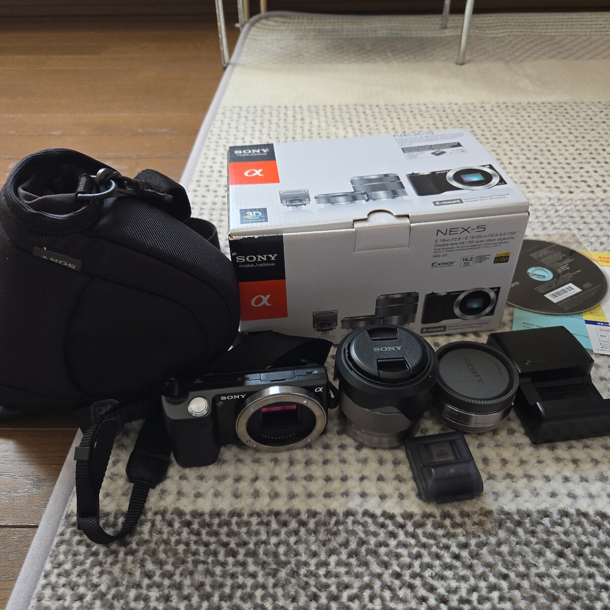 - 【超美品!】SONY α NEX-5Dミラーレスカメラ ダブルレンズキット NEX-5D(B) 付属品全て揃っていてSONYのカメラケース付けます