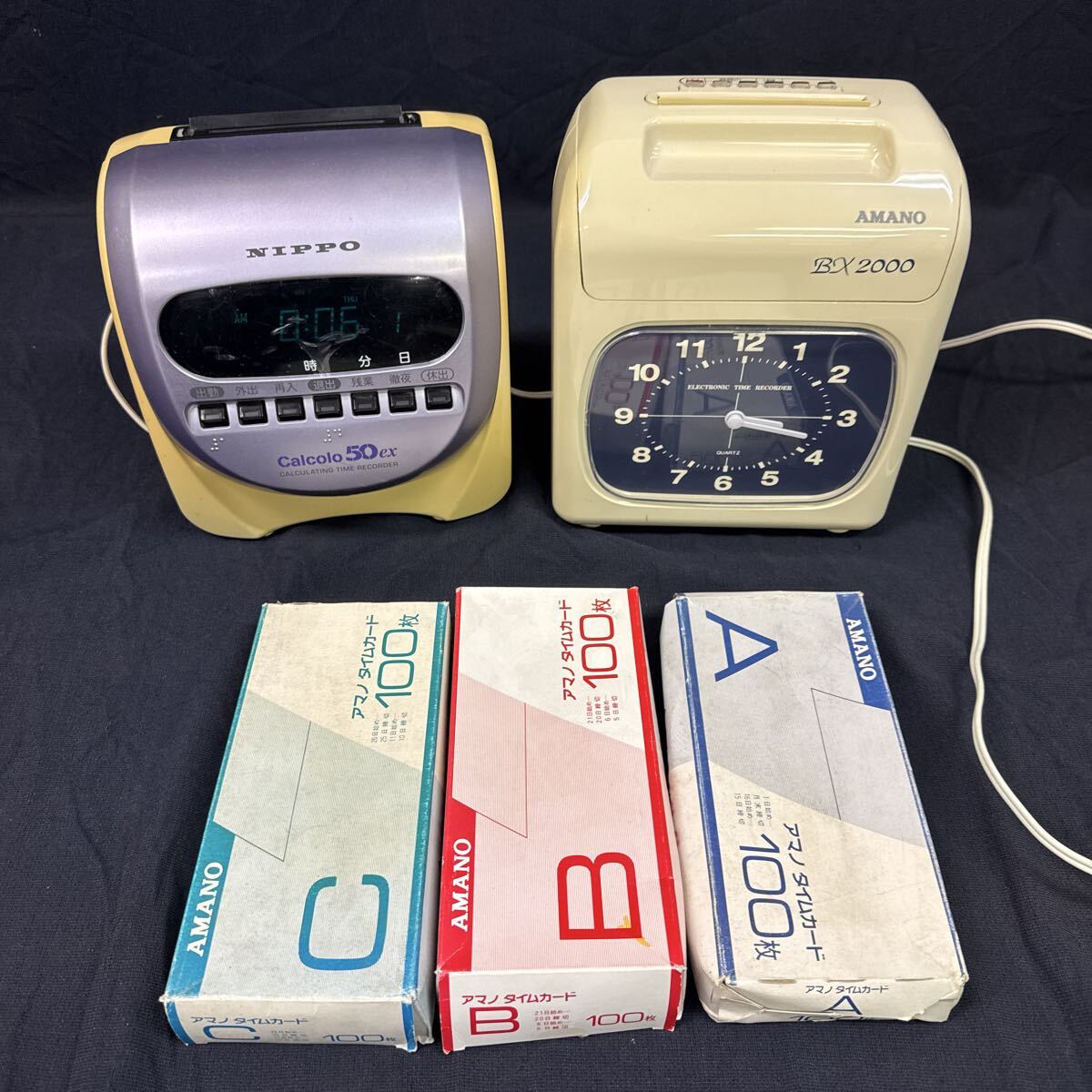 - ◆タイムレコーダー 2点まとめ売り NIPPO Calcolo 50ex AMANO BX2000 出退勤 勤怠管理 事務用品 ジャンク 301-85